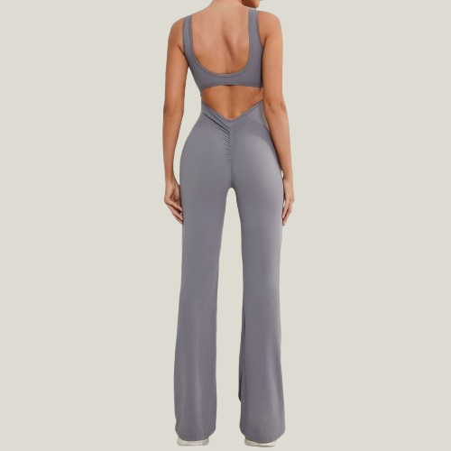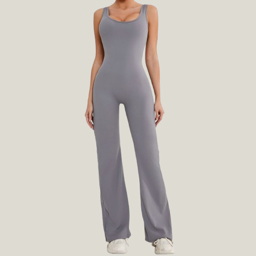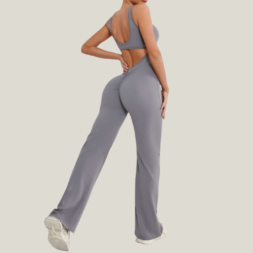 אוברול חלק מבד מחטב עבה, המחמיא לאזור הבטן עם פסי סיליקון מונעי החלקה