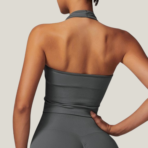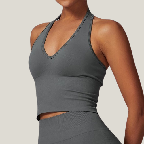טופ חלק מבד מחטב עבה, המחמיא לאזור הבטן עם פסי סיליקון מונעי החלקה