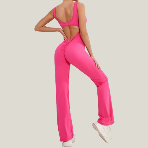 אוברול חלק מבד מחטב עבה, המחמיא לאזור הבטן עם פסי סיליקון מונעי החלקה