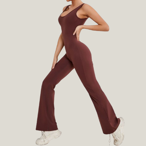 אוברול חלק מבד מחטב עבה, המחמיא לאזור הבטן עם פסי סיליקון מונעי החלקה