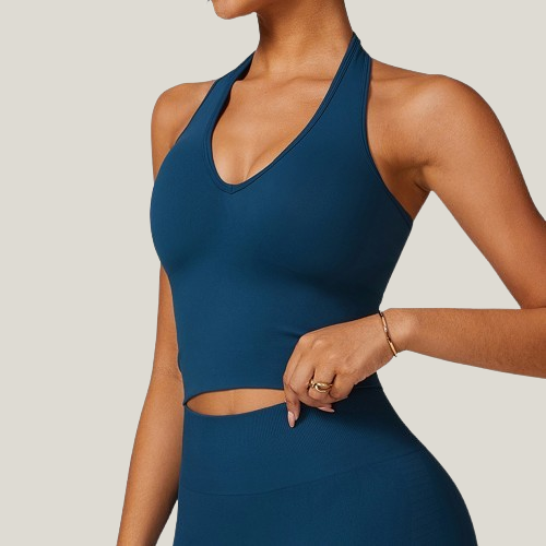 טופ חלק מבד מחטב עבה, המחמיא לאזור הבטן עם פסי סיליקון מונעי החלקה