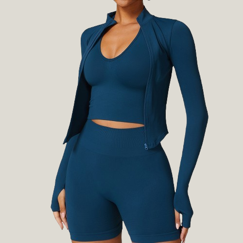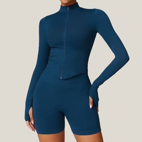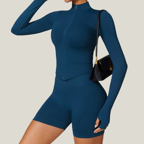 סווטשירט חלק מבד מחטב עבה, המחמיא לאזור הבטן עם פסי סיליקון מונעי החלקה