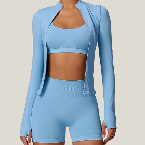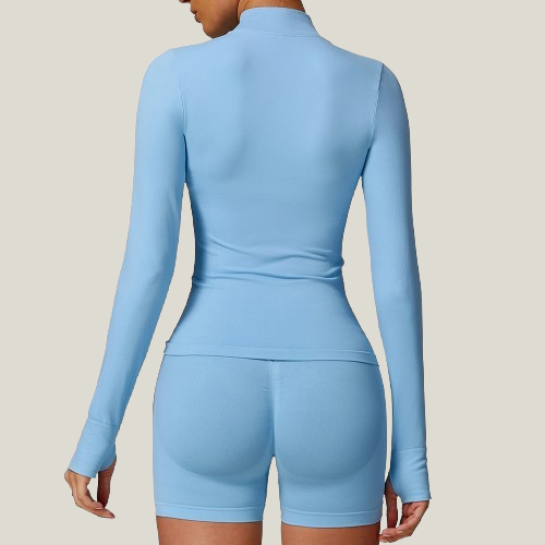 סווטשירט חלק מבד מחטב עבה, המחמיא לאזור הבטן עם פסי סיליקון מונעי החלקה