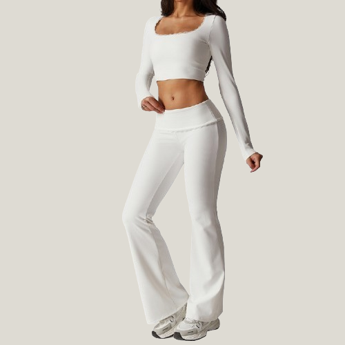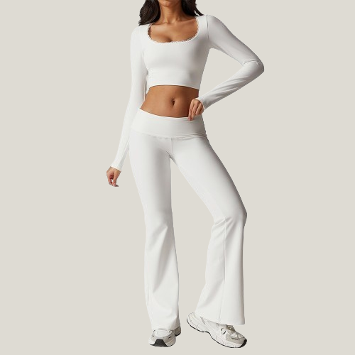 סט חלק מבד מחטב עבה, המחמיא לאזור הבטן עם פסי סיליקון מונעי החלקה