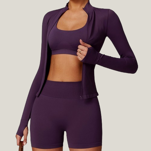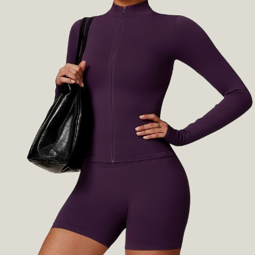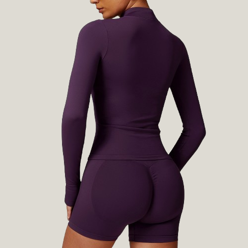 סווטשירט חלק מבד מחטב עבה, המחמיא לאזור הבטן עם פסי סיליקון מונעי החלקה