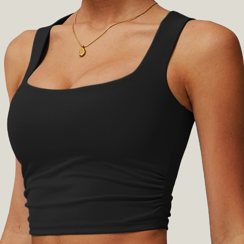 טופ חלק מבד מחטב עבה, המחמיא לאזור הבטן עם פסי סיליקון מונעי החלקה