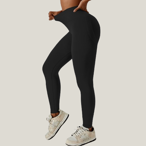 טייץ חלק מבד מחטב עבה, המחמיא לאזור הבטן עם פסי סיליקון מונעי החלקה