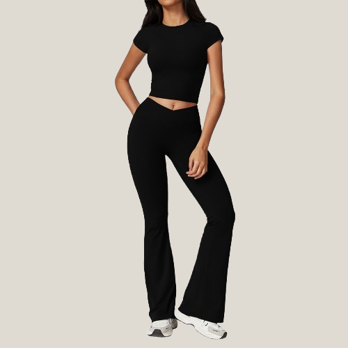 סט חלק מבד מחטב עבה, המחמיא לאזור הבטן עם פסי סיליקון מונעי החלקה