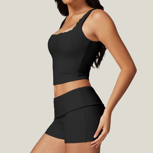 סט חלק מבד מחטב עבה, המחמיא לאזור הבטן עם פסי סיליקון מונעי החלקה