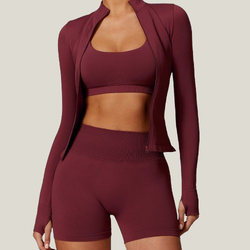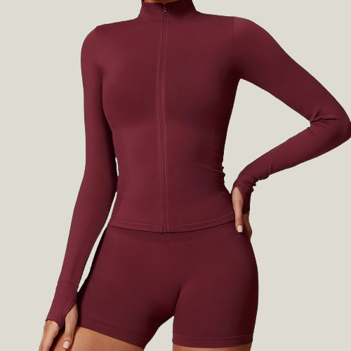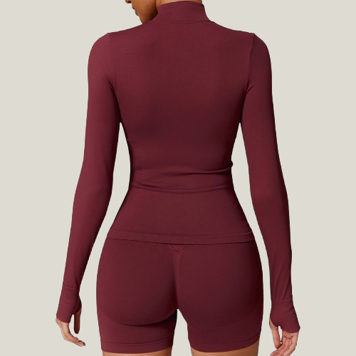 סווטשירט חלק מבד מחטב עבה, המחמיא לאזור הבטן עם פסי סיליקון מונעי החלקה