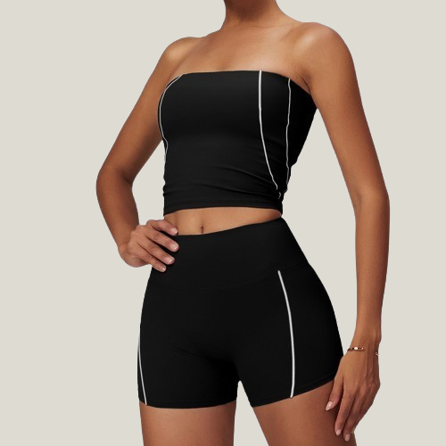 סט חלק מבד מחטב עבה, המחמיא לאזור הבטן עם פסי סיליקון מונעי החלקה