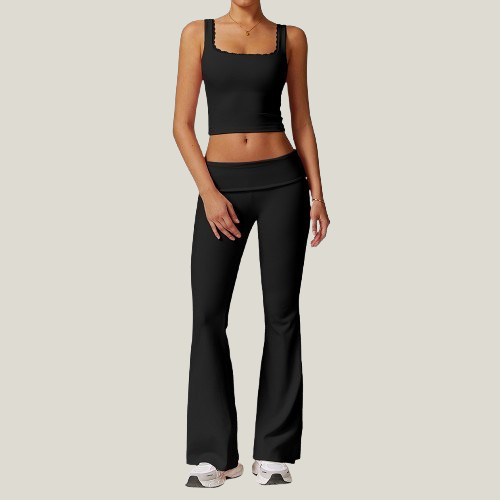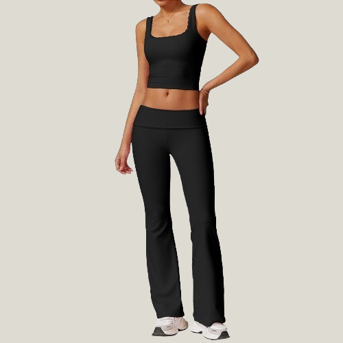 סט חלק מבד מחטב עבה, המחמיא לאזור הבטן עם פסי סיליקון מונעי החלקה